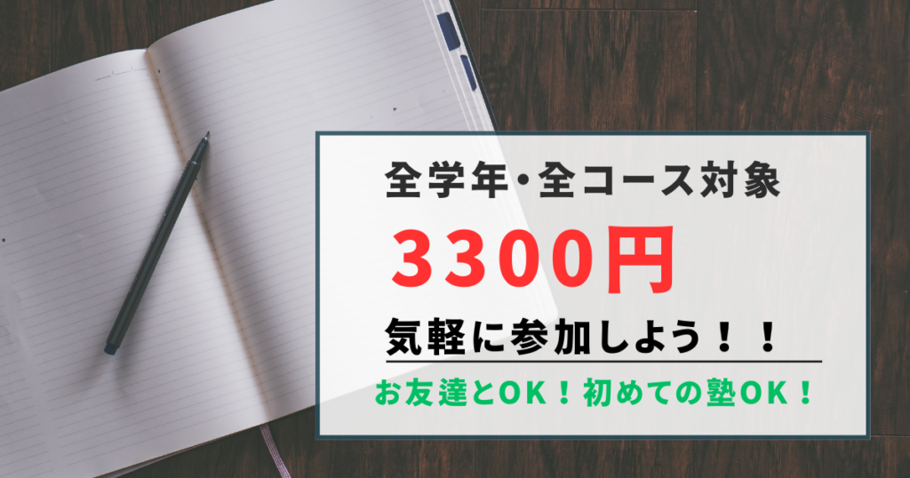 ●中学生受講料 3300円 (教材費・テスト費・税込み)